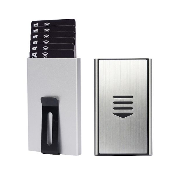 Portable 60*15*100MM Silver Anodized Aluminum Card Wallet With Customizable Laser Engraving Images |